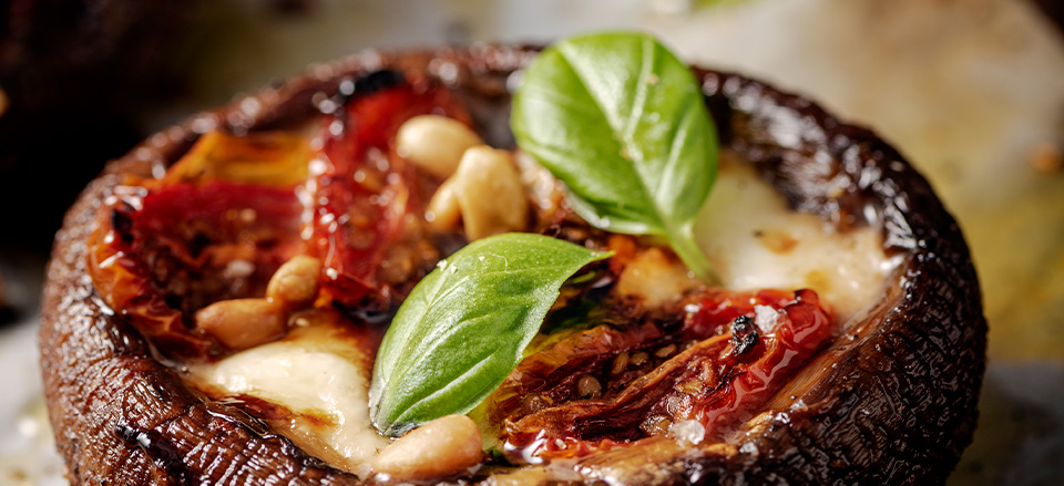 Fyldte portobellosvampe på grillen