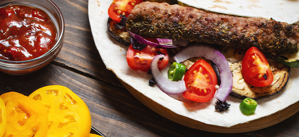 Serveres evt. med pitabrød, dressing og friske grøntsager.