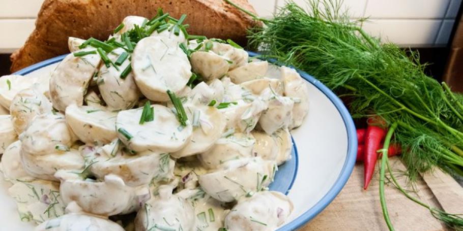 Server til grillet kød, pølser, frikadeller eller hvad du ellers synes er helt perfekt sammen med kartoffelsalat.