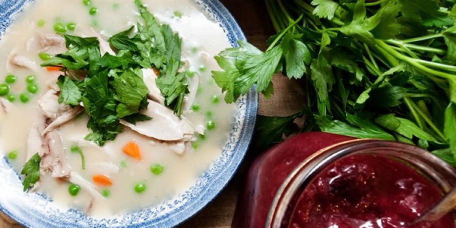 Lad kyllingen simre ca. 1 time til den er mør.