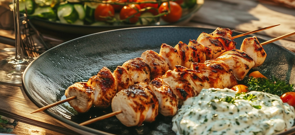 Marinerede kyllingespyd på grill