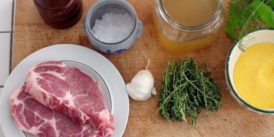 Gnid koteletterne godt med salvie, olivenolie, 2 fed hvidløg, salt og peber.