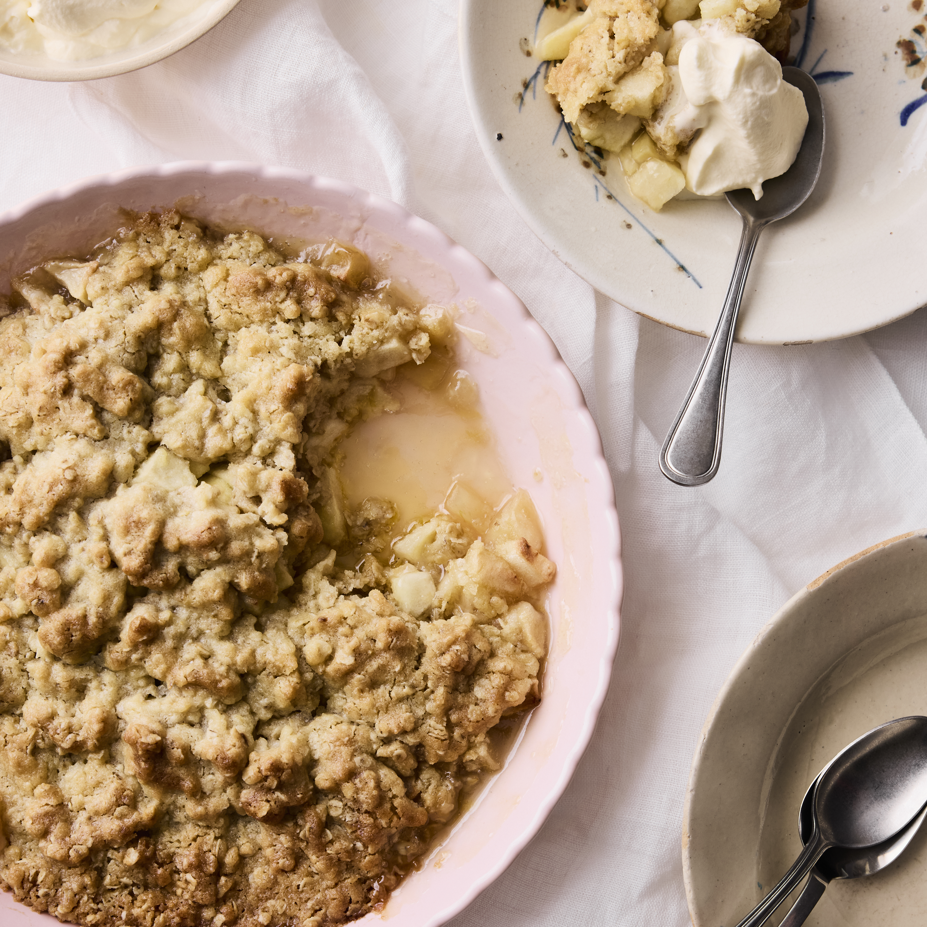 Servér din crumble varm eller lun, med vaniljeis, flødeskum eller cremefraiche.