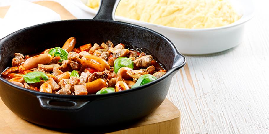 Skinkegryde med cocktailpølser