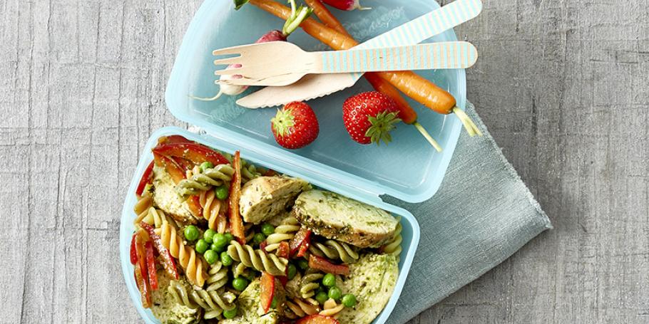 Sommer pastasalat med pesto og kylling
