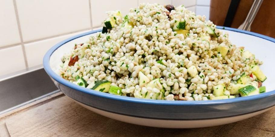 Speltsalat smager især godt til svin og kylling.