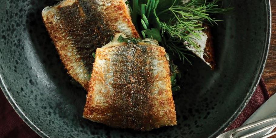 Vend fileten i rugmel, og steg den på en pande i halvt smør og halvt olie.