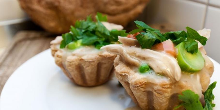 Tarteletter med kylling, porrer, ærter og gulerødder