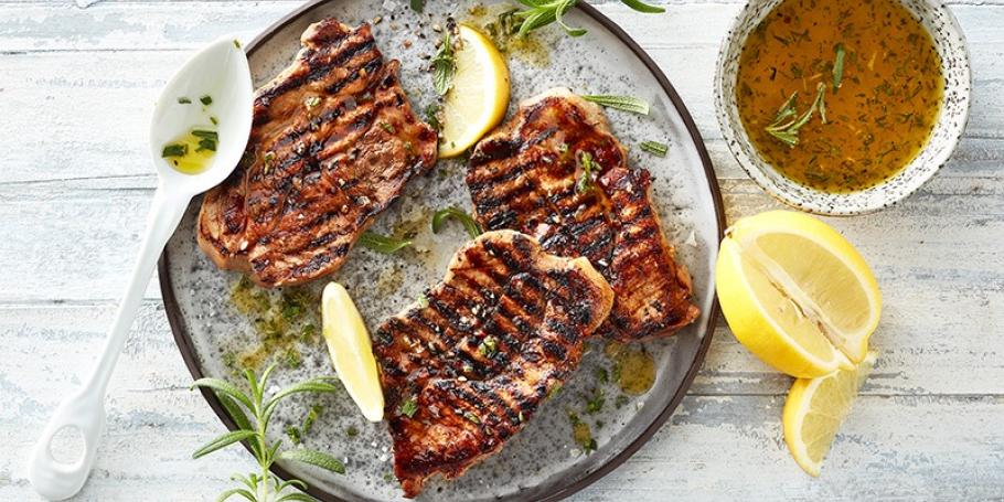 Velsign dine koteletter med en marinade af citronsaft, honning, olivenolie, rosmarin, salt og peber.